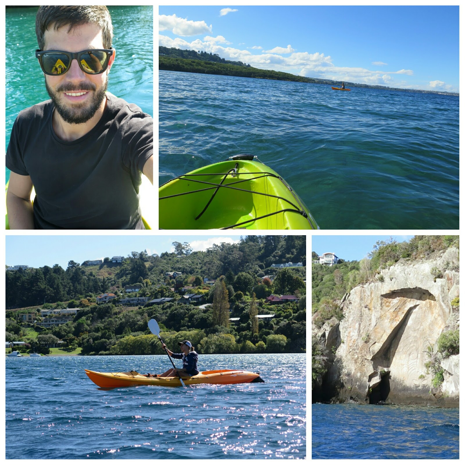 Dort haben Maori eine 10 m hohe Felswand mit Gravierungen verziert. Sehen kann man das nur vom Wasser aus und am "einfachsten" mit dem Kajak. Das hört sich genau nach dem Richtigen für uns an... und entpuppte sich als der Reinfall des Tages.